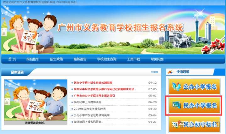 2、无论是广州集体户还是原广州户籍,无论是统筹入学还是地段入学,都是在该网站进行小学报名。