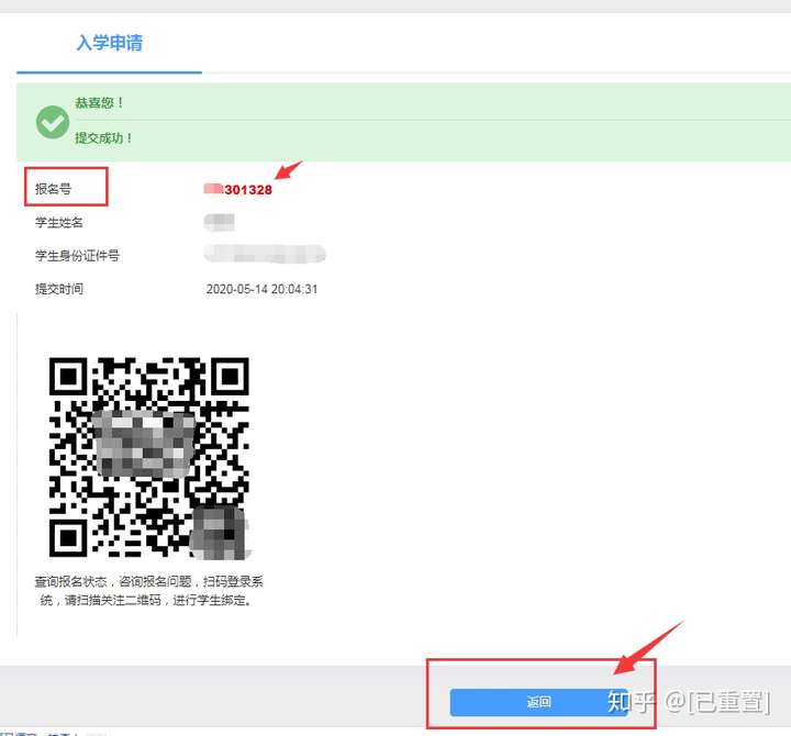 1.点击返回,招生平台会将报名信息形成一份学位申请表;