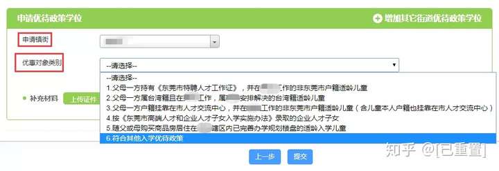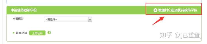 2.如果符合多个镇街的优待政策,可以点击右上角增加其它镇街优待政策学位添加。