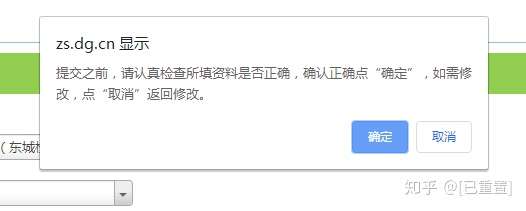 填写完毕后,点击页下端提交,系统会提醒申请人家长再次检查,如检查无误后,请按确定,如果需要修改,请按取消并返回修改。