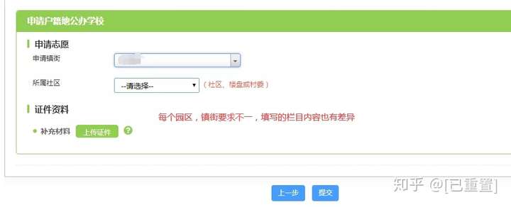 3.由于各园区、镇(街道)要求不一,申请户籍地公办学校栏目需要填写和上传资料的要求也不一,请根据栏目要求和填报说明填写。