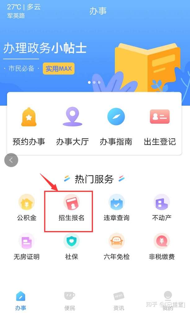 (1)下载莞家政务APP,点击招生报名栏目,进入招生平台。