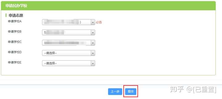原则上每个申请人可以申请不超过5所的民办学校(★注意:并不是必须填满5所民办学校,家长可结合实际填写,填写前充分了解民办学校的办学特色,住宿安排、收费水平,接送问题等)。