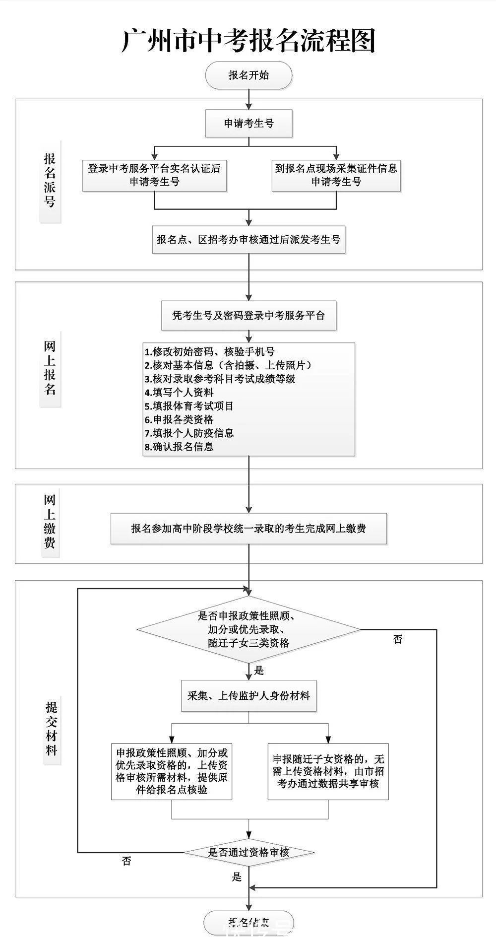 点击网上报名,按下图流程操作即可完成广州中考报名(高中招生考试)