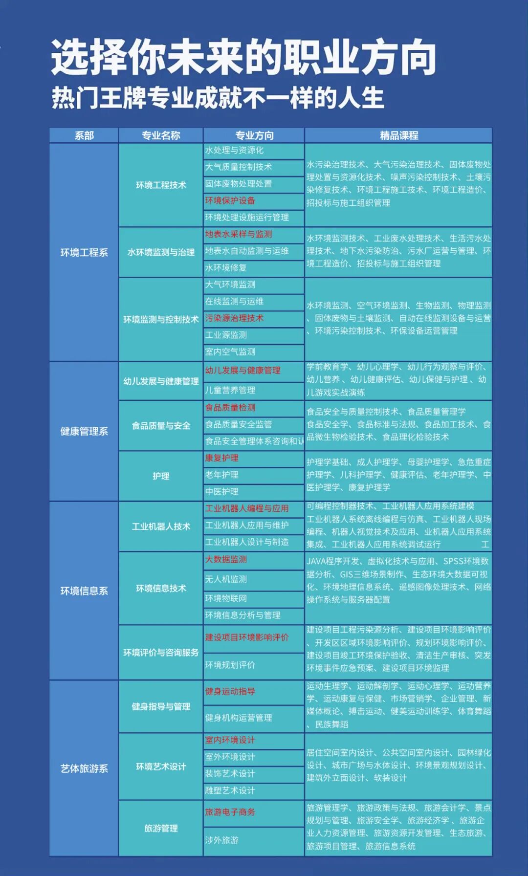 四大系部12大热门专业