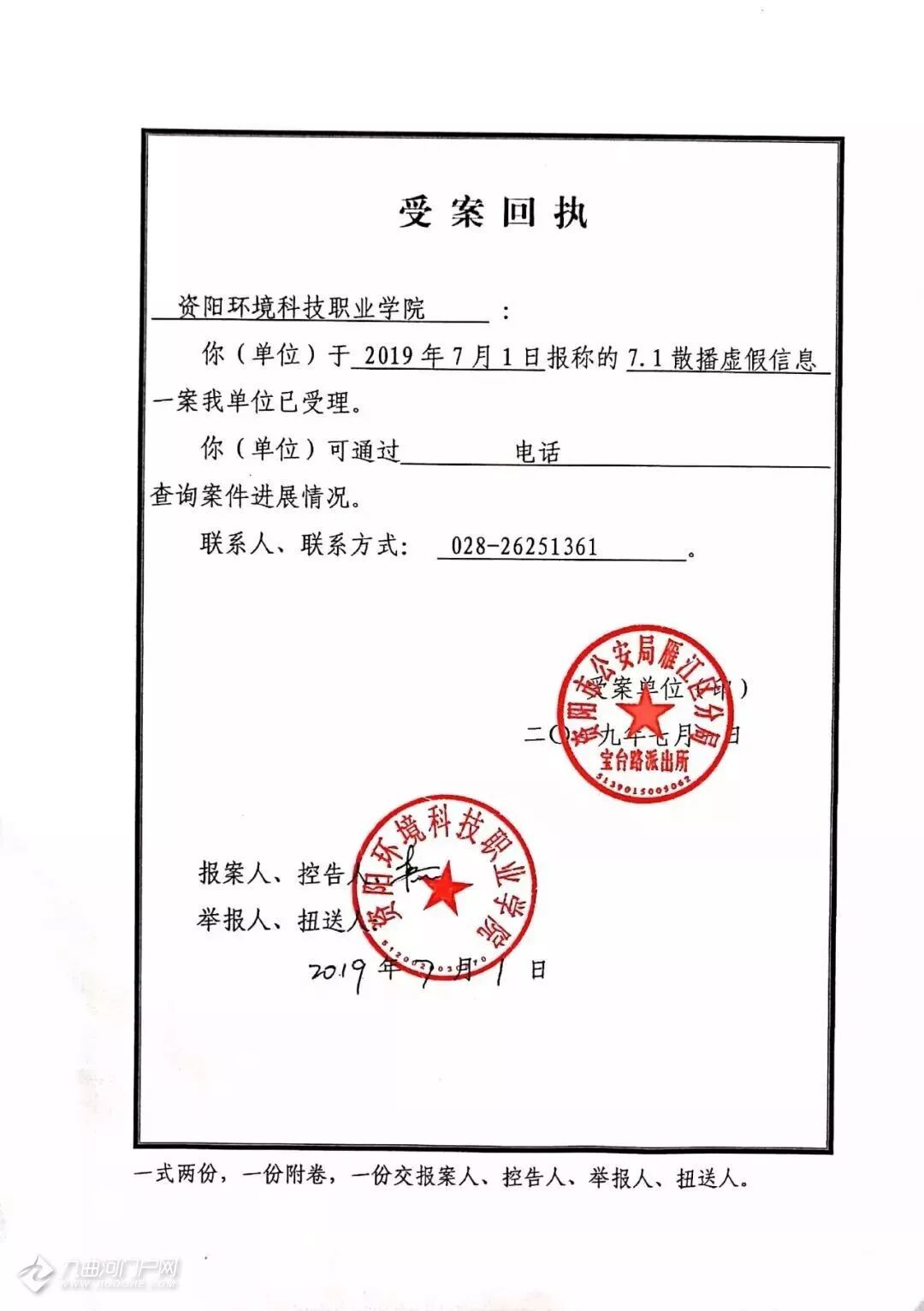 该虚假消息出来后,资阳环境科技职业学校相关负责人就网帖内容予以了澄清并在其公众号发表了声明。