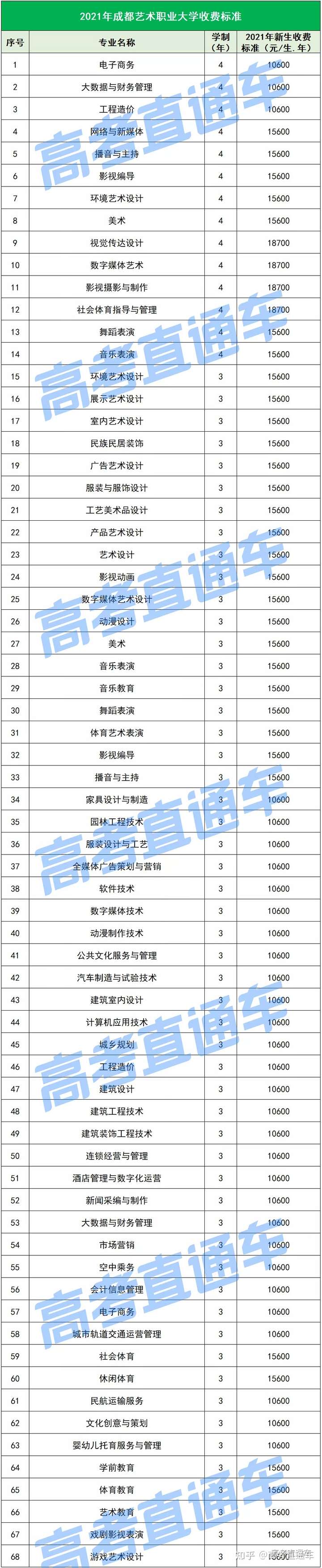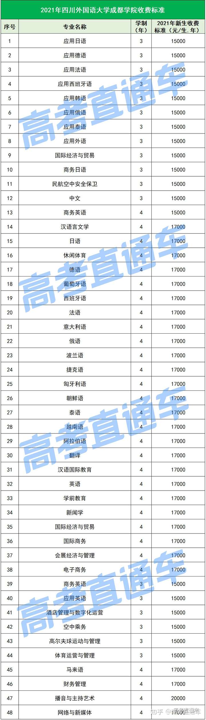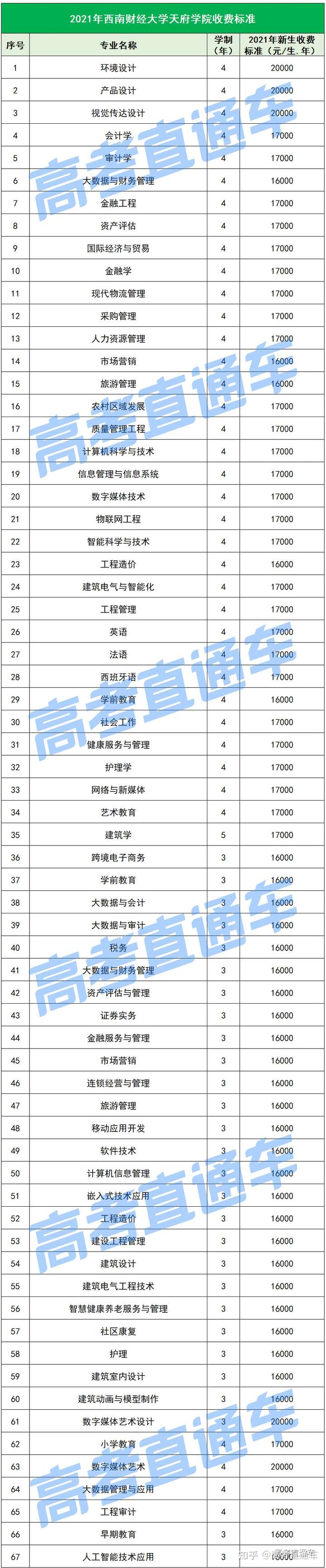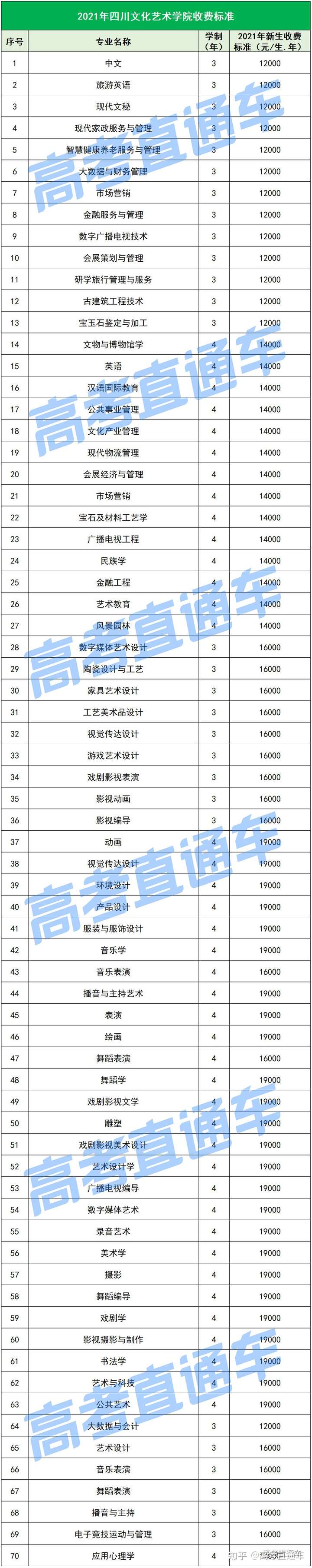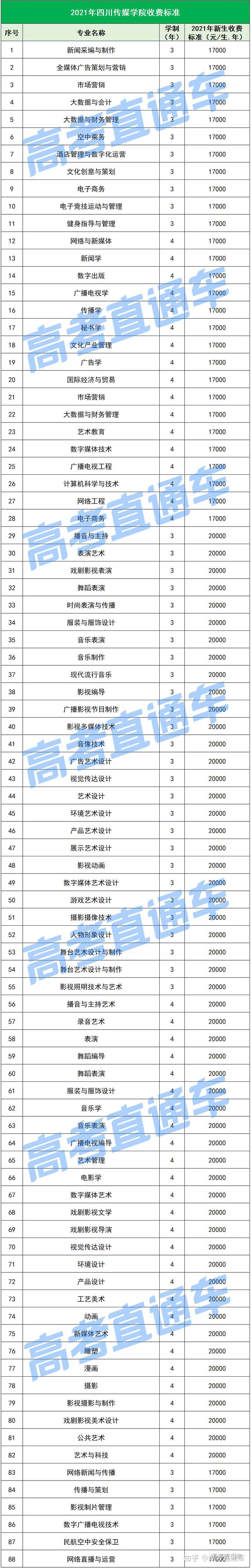 以下是各所民办院校各专业的最新学费标准↓↓↓