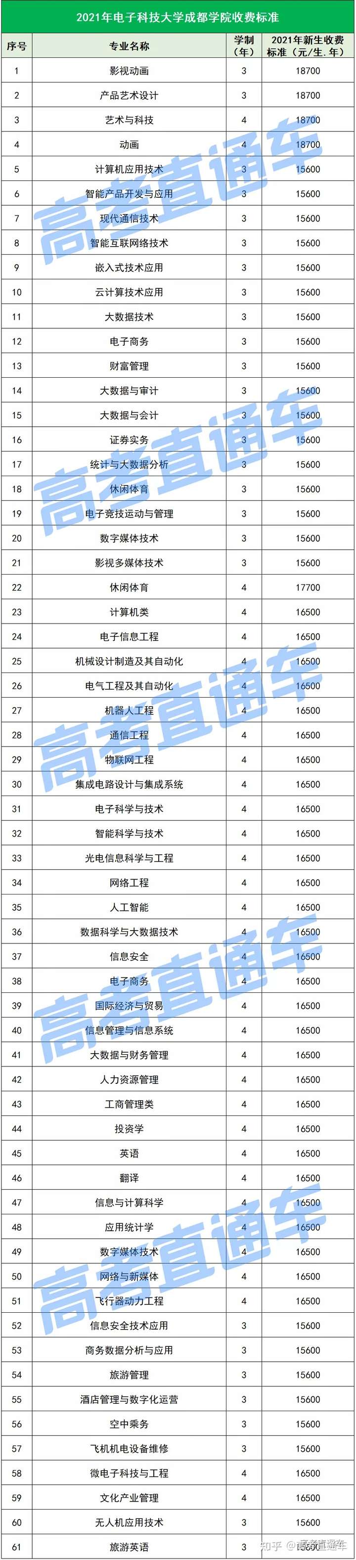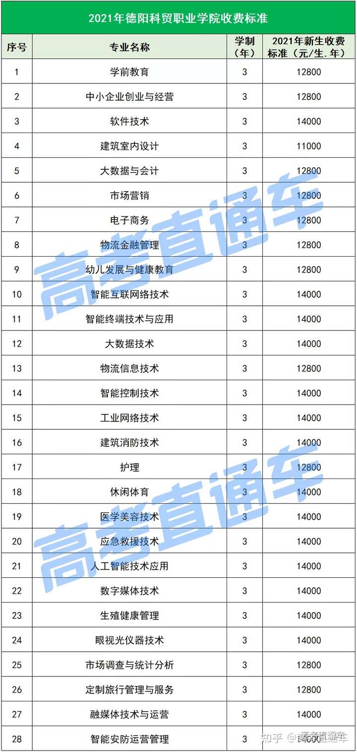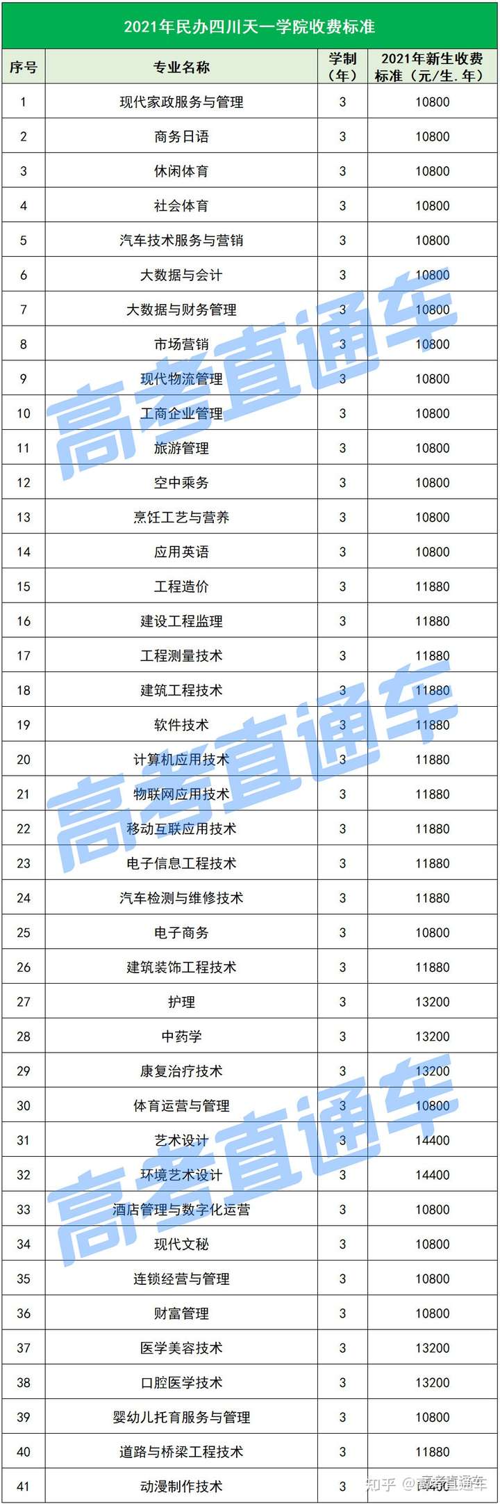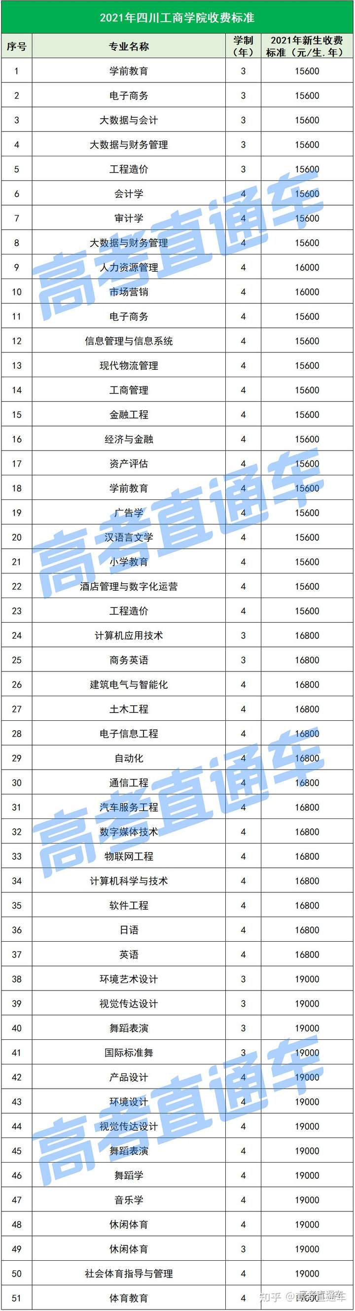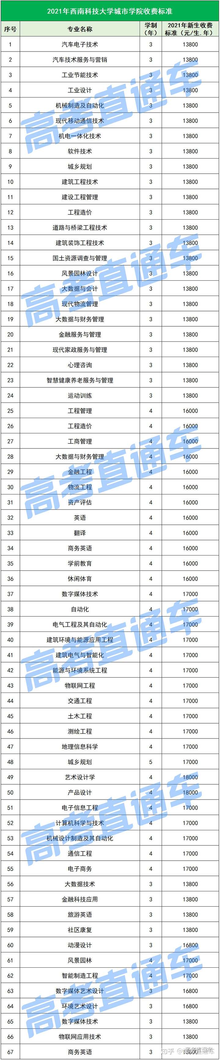 以下是各所民办院校各专业的最新学费标准↓↓↓