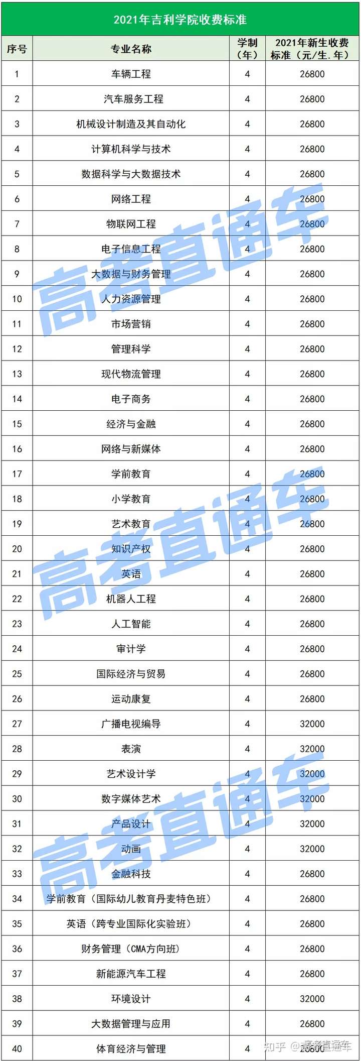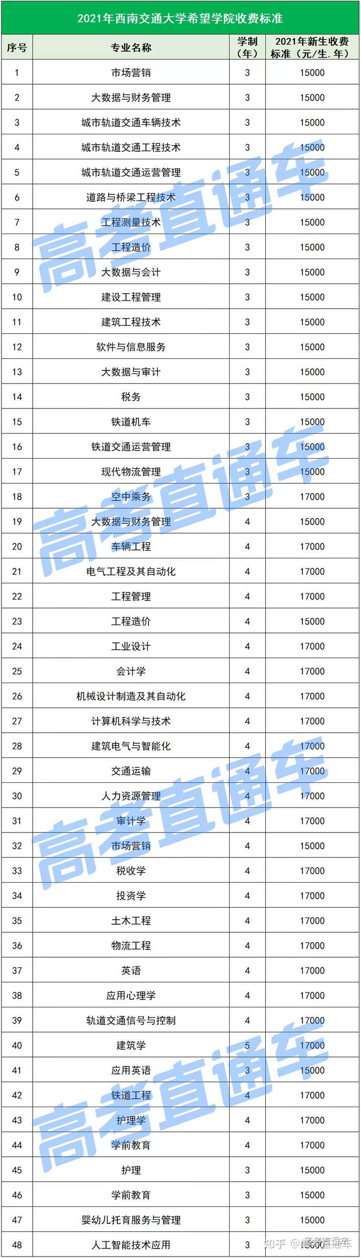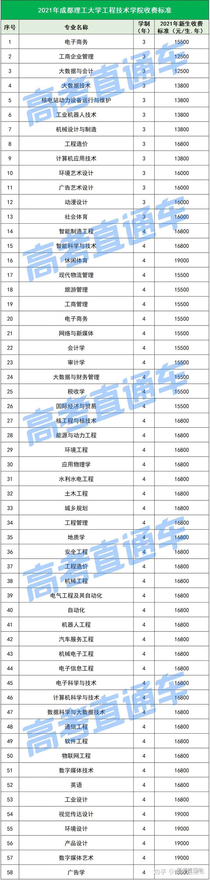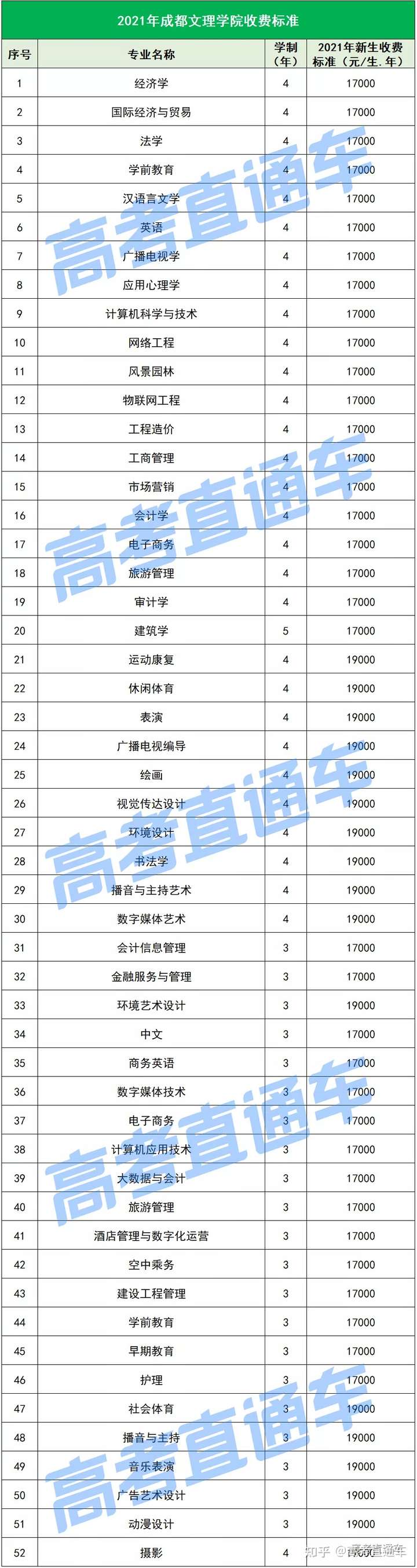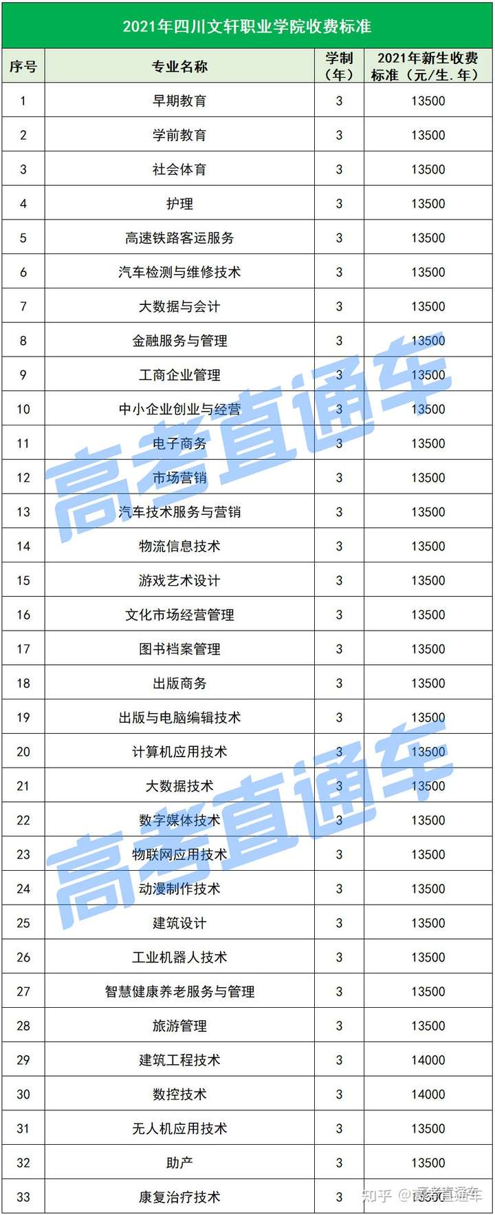 以下是各所民办院校各专业的最新学费标准↓↓↓