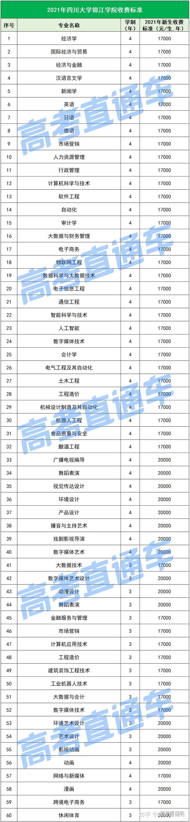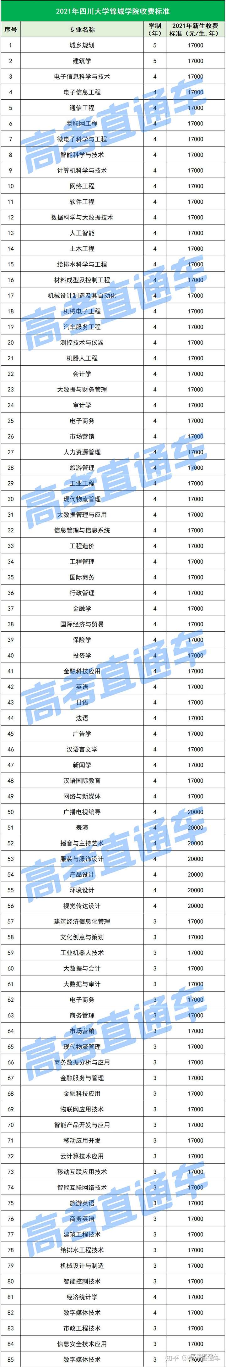 2021年四川民办院校最新学费标准