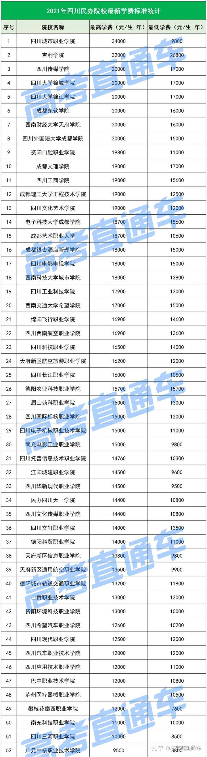 今年四川各所民办院校的大一新生要交多少学费?最高学费标准为多少?一起来看看!