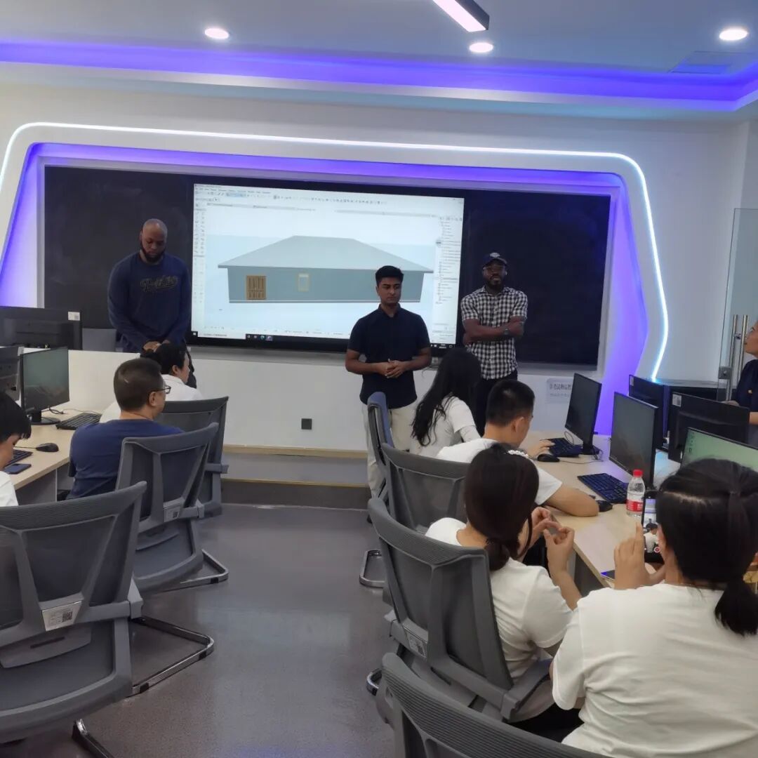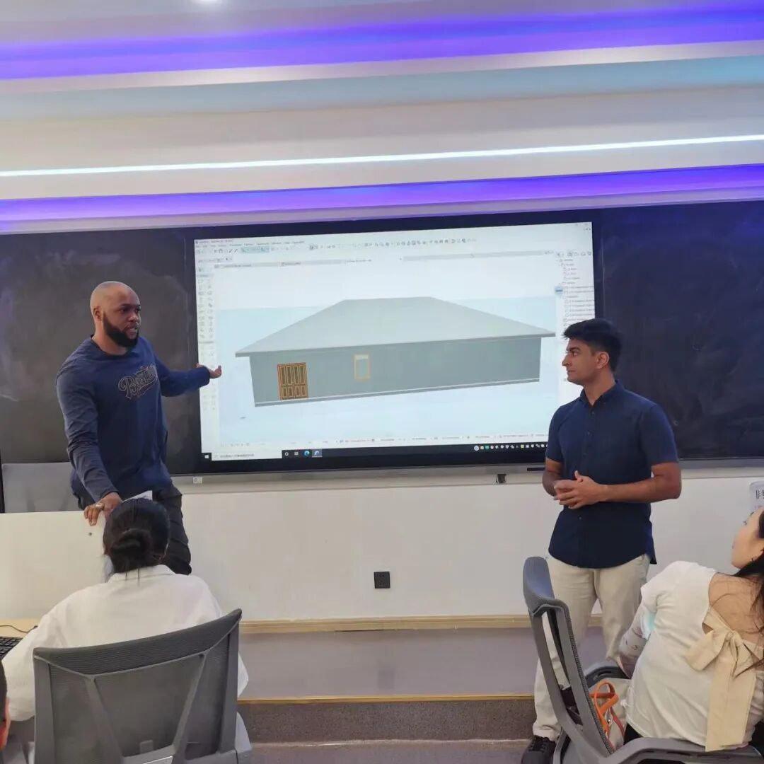 7月7日下午,李校长一行抵达四川建筑职业技术学校,国际技术教育学校副院长董思萌、中外合作办学项目部主任王娇娇做了热情接待,并带领大家参观了四川建筑职业技术学校与澳大利亚合作开发的中澳共建BIM+VR虚拟仿真实训中心,体验了三名外教的BIM课程,体验过程中,董思萌副院长亲自翻译,老师们切实感受到了外籍教师信息化教学带来的便捷和不一样的国际化教学手段。