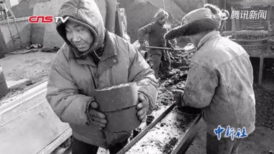 打蜂窝煤。中新视频截图