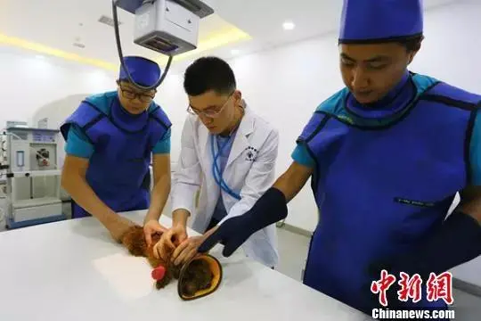 宠物医生正在给泰迪犬进行X光检查。高展 摄