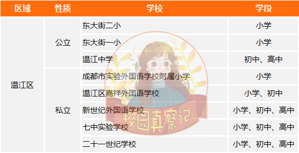 4、本次盘点以主城区学校为主,二圈层盘点了双流区、温江区、郫都区、龙泉驿区、新都区,其他区微妈目前了解还不全面,这次暂不盘点了,下次再更新。