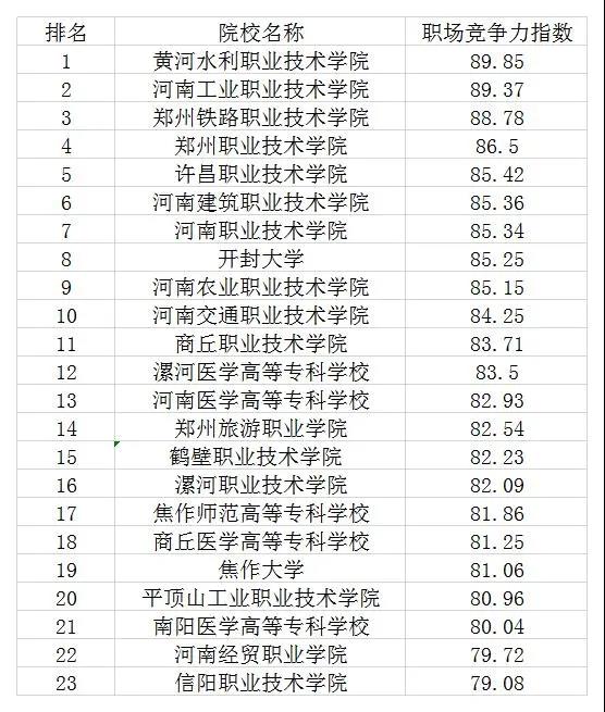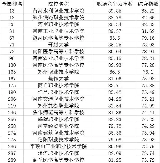 以下是河南专业院校职场竞争力排名以及全国综合排名,一起来看看!