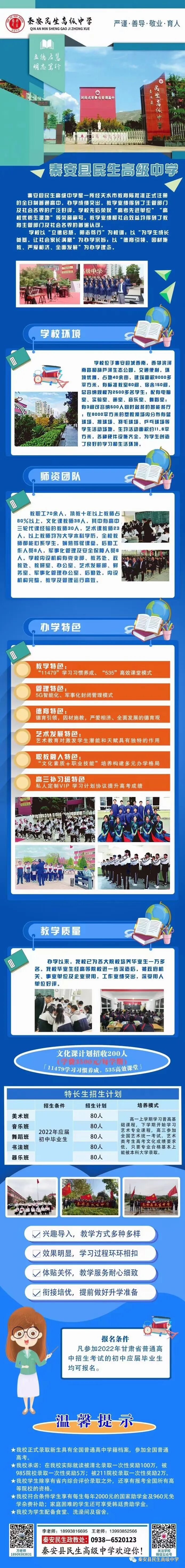 13993852566(王老师)学校地址:天水市秦安县民生中学