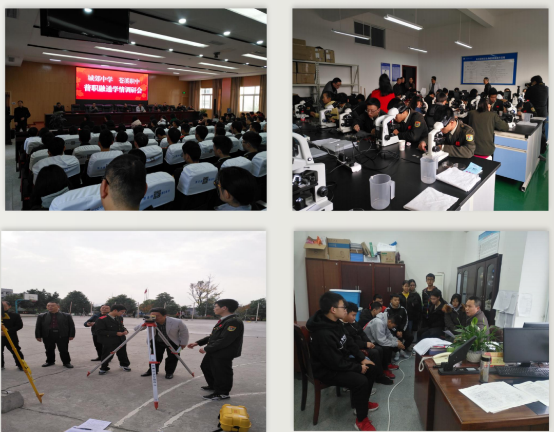 2014年,苍溪职中与苍溪五龙中学开始进行校际间小规模普职融通探索。苍溪职中派专业课教师到五龙中学开展每周一次的职业教育体验式教学,五龙中学学生到苍溪职中参加每月一次的沉浸式实习实训学习,普通高中的学生们慢慢喜欢上了这种动手式的专业学习。2015年,200余名普高学生参与职业体验,10人选择到苍溪职中进行专业学习,10人高考全部上线,其中2人考取本科。2016年,苍溪职中又迎来10名普高学生到校就读,10人高考全部上线,2人考取本科,其中严林同学在本科毕业后又成功考取大连海洋大学研究生。