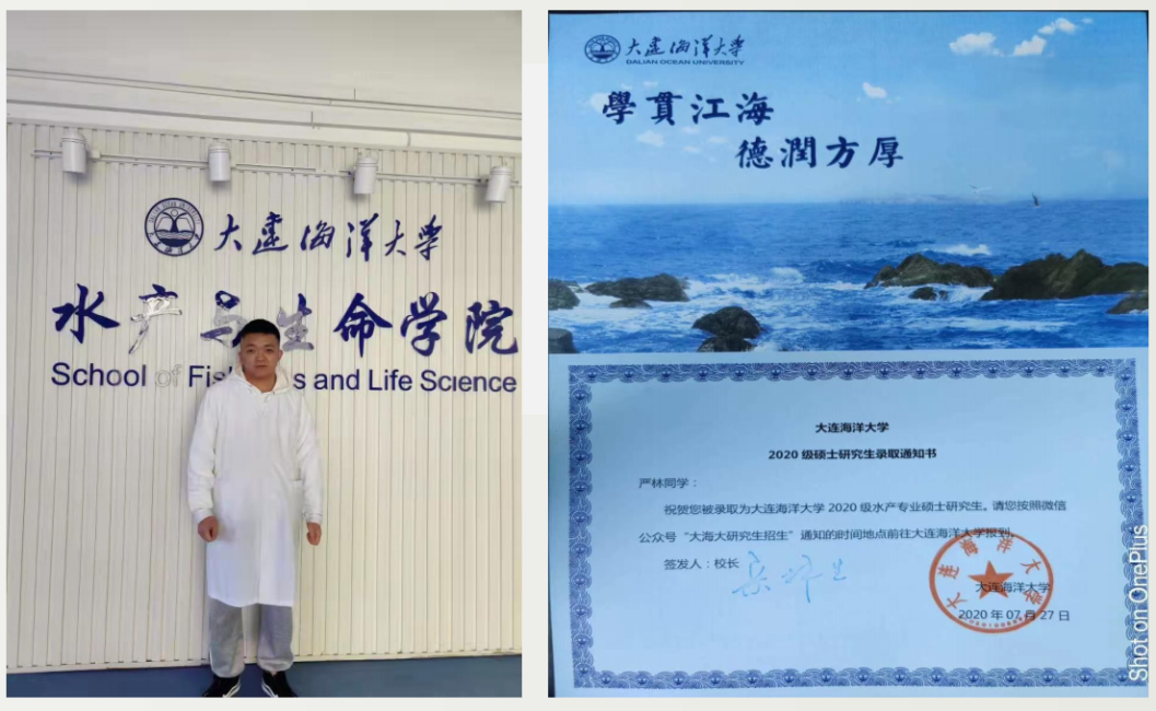 严林同学考取大连海洋大学的研究生