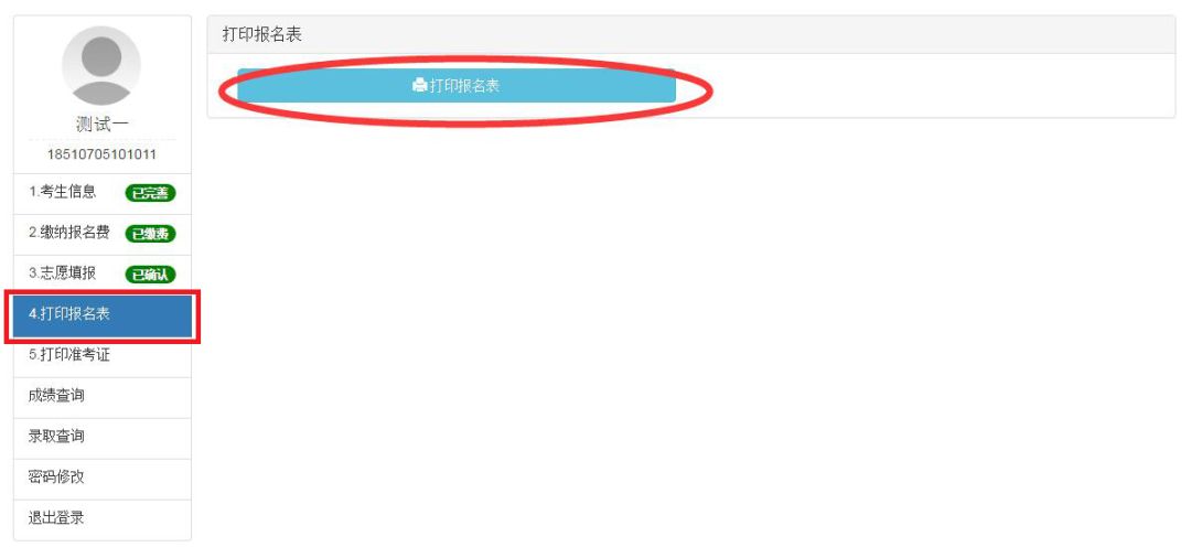 打印报名表:各位考生完成缴费和专业确认后可在线打印报名表,报名表打印后须到毕业所在学校签署意见和盖章。