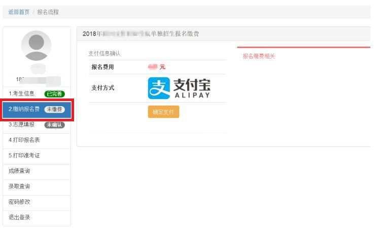 缴纳报名费:各位考生完善个人信息后,请点击缴纳报名费在线(支付宝扫描二维码)缴纳报名费,报名费用为 130 元,缴纳成功后,缴纳报名费显示已缴费。