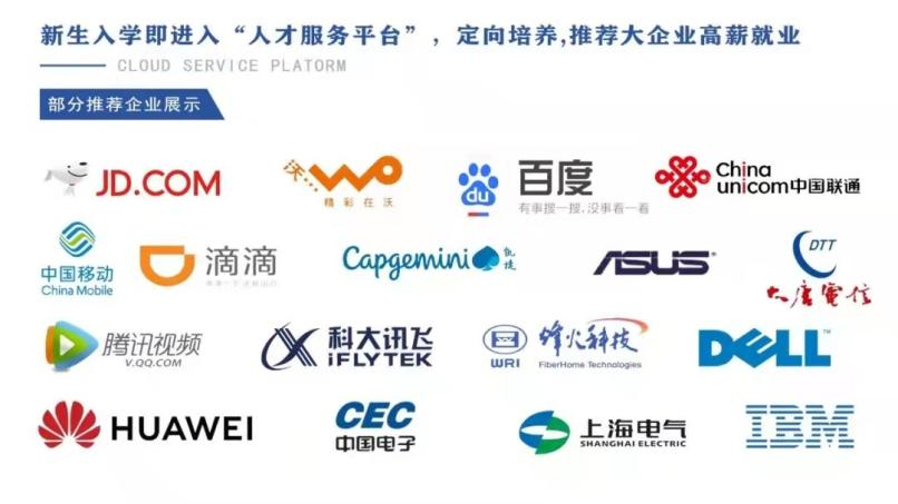 同时,学校与微软、IBM、华为、浪潮、百度、腾讯、上海电气自动化研究所、中核、中船、中国移动、中国电信、大唐移动通信等国内外一大批企业建立了合作伙伴关系,学生在学习期间可享受丰富的教育资源,毕业时经考核合格后可直接对口就业于国内外知名合作企业。同时针对区域内行业需求,学校积极拓展天府软件园、成都孵化园、青羊工业园区、绵阳科技城等高新技术园区企业就业渠道,立足地方,服务区域经济。