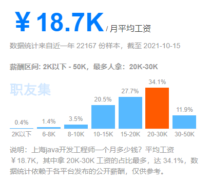无论哪个岗位,薪资都是所有求职者在意的最重要的因素之一,对于想要转行的人员而言,初入开发岗位的薪资成为了他们不得不关心的重点,与其他岗位相比,JAVA开发工程师的薪资在一线城市即可到达18.7K的数据,其中34.1%的同学拿到了20—30K的薪资。