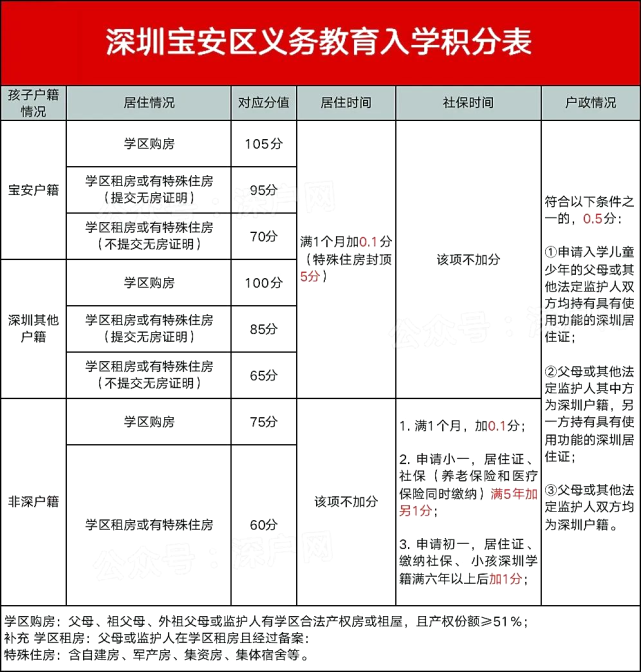 比如同样是学区购房,深户最高105分,非深户75分,同样是学区租房,深户最高是95分,没深户是60分。