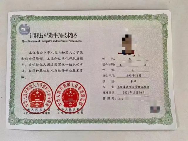 ▲系统集成项目管理工程师证书