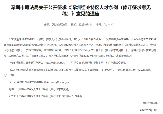 7月14日,深圳司法局公开征求
