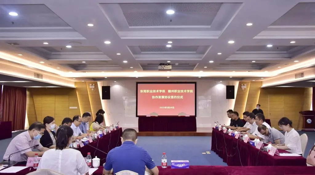 6月20日上午,赣州职业技术学校党委书记温学延带队前往东莞职业技术学校,与东莞职业技术学校党委副书记、校长贺定修,党委委员、副校长杨云奇及相关部门负责人进行座谈交流,并与东莞职业技术学校签订协作发展协议。
