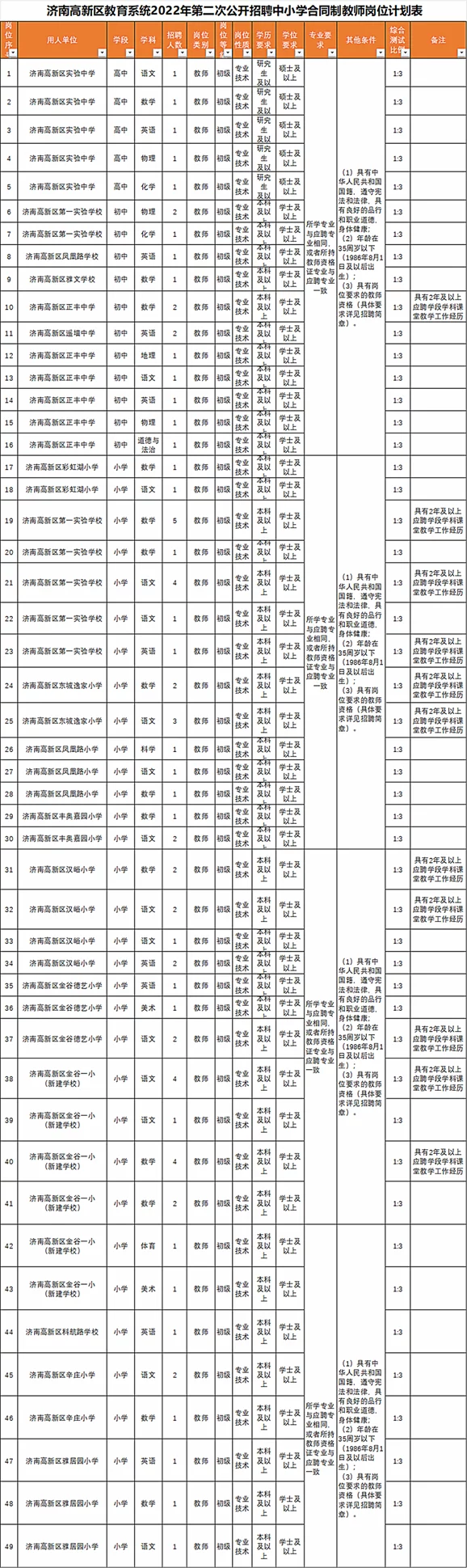 各类岗位具体招聘要求见《济南高新区教育系统2022年第二次公开招聘中小学合同制教师岗位计划表》。