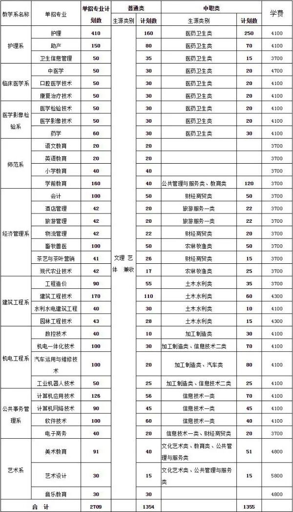为深入贯彻落实《四川省人民政府关于印发四川省深化考试招生制度改革实施方案的通知》(川府发〔2016〕20号)精神,加快推进高职院校分类考试,进一步完善高等职业教育多样化选拔录取机制,根据四川省高等教育招生考试委员会、四川省教育厅《关于做好2020年普通高等学校高职教育单独招生工作的通知》(川招考委[2020]1号)精神,我院2020年继续在四川省范围内对部分专业实行单独招生,招收对象为2020年普通类和中职类的毕业生,计划招生2709人。为保障我院2020年单独招生工作的顺利实施,特制定本方案,本方案适用于达州职业技术学校2020年在川单独招生工作。