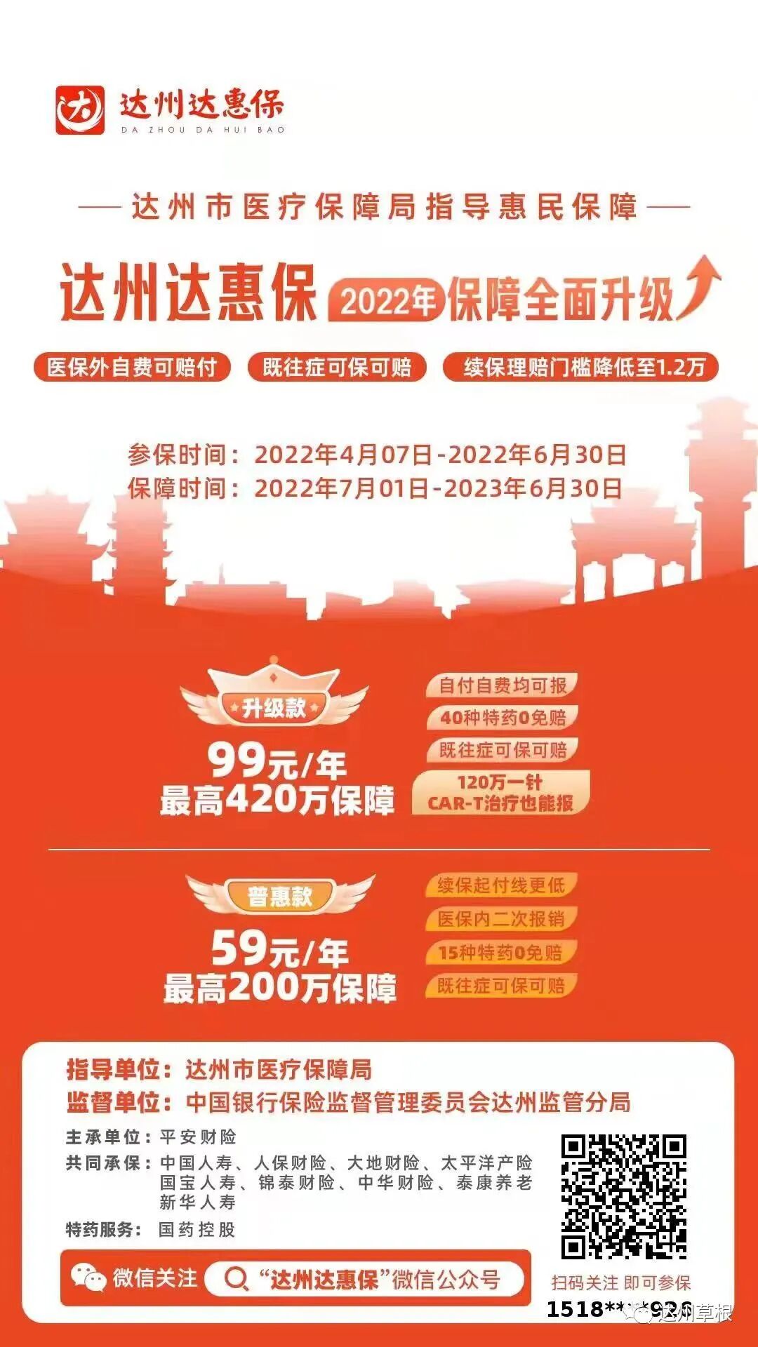 这个筹 ,那个筹,不如99元解忧愁。这个保,那个保 ,不如多份达惠保。小病有医保,大病达惠保。59元保障200万,99元保障420万。多种选择任你选,即日起识别下方二维码就可以购买了!
