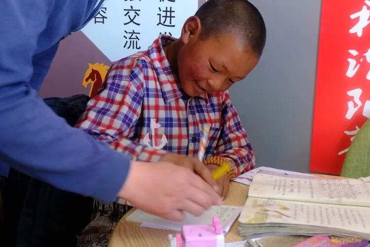 一笔一划,小波认真地练习着上周课文《雷锋叔叔 你在哪里》中学习的汉字,志愿者程勇则在一旁细致地辅导。从汉字拼读到声调发音,从笔顺笔画到组词造句,小波听得神情专注。另一边,达热、俄觉、洛洛、友珍四名小学五年级的女生,也抓紧时间向志愿者老师请教着分数的加减法运算,老师在草稿本上通过画图的方式让孩子更直观地了解数学运算。如今,色达新时代文明实践中心志愿者在安康社区的周末来班义务教育辅导活动已成为响亮的名片之一。