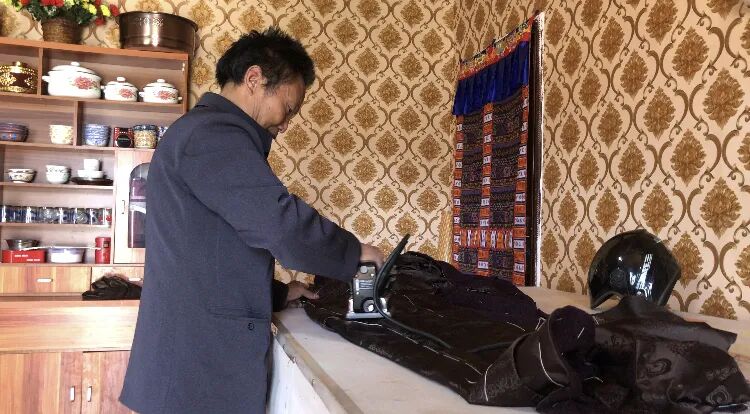 走进五星居民雷明华的家,屋里屋外被收拾得干净整洁。他正在熨烫刚制作完成的藏袍,准备拿到城里的店铺里售卖。雷明华因为曾经身患重病,不能从事重体力活。为了增加家庭收入,夫妻俩便学起了服装缝纫制作的手艺。雷明华说:去年,社区新时代文明实践中心成立以后,为我们组织的劳动技能培训更多了。根据自己身体情况,我选择了学习缝纫技术,现在我制作的藏袍一件能卖两百多元,一年下来收入也是很可观的。