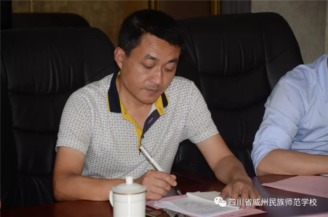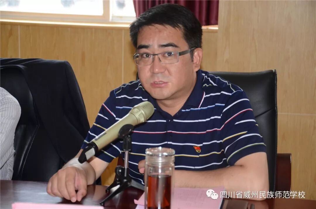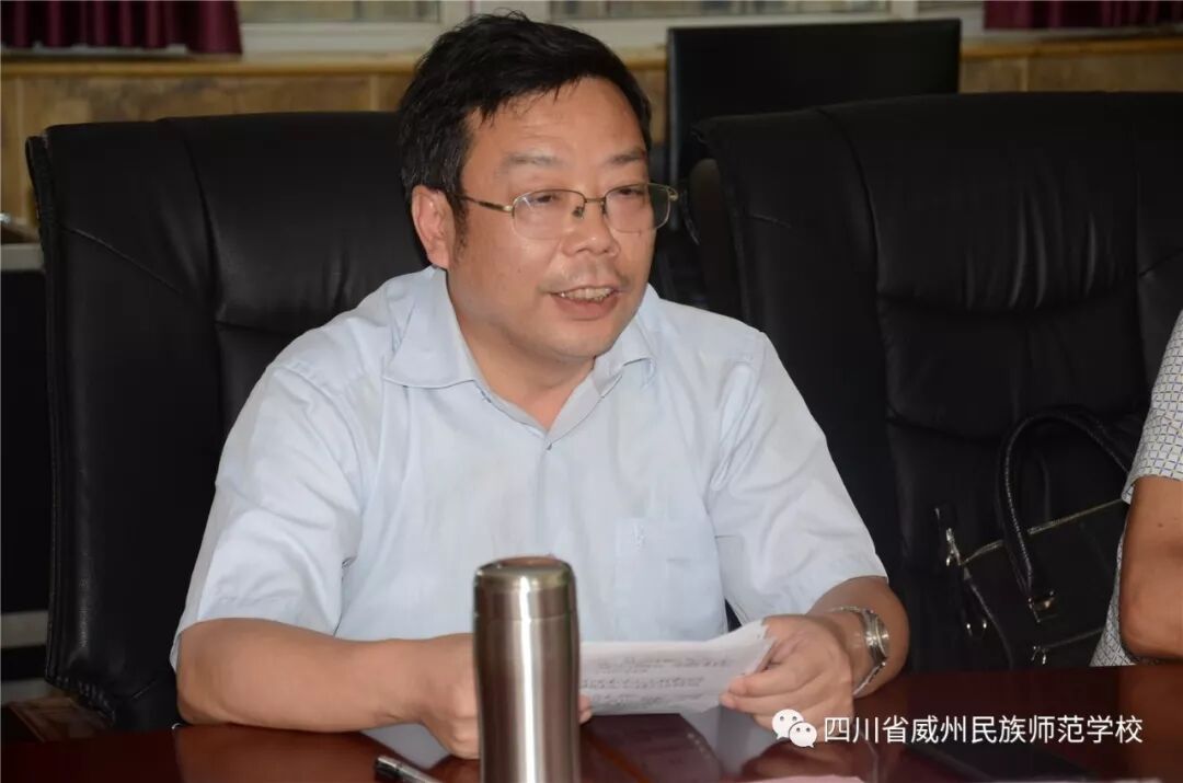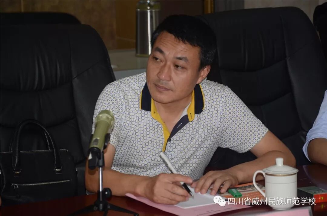射洪职业中专学校副校长余永双讲话,他首先感谢威师校提供这次主场学习的机会,感谢学校前期统筹准备此项工作,他说,威师校享誉省内,硕果累累,校园文化特色突出,教学管理科学规范,教师教学能力强,硬件建设卓有成效,尤其值得我们学习,通过刚才校方对学校的全面介绍,我们学习了威师在党建、德育、教学、后勤、宣传等方面的经验,深受启发。并介绍了射洪职业中专学校1983年改建,前期因交通不便,制约学校的发展,经过学校的努力,1996年升为国家重点职中,现有农民工培训校区,职中校区,本部校区三个校区,中职教育三个板块,学校是全省首批教学诊改试点单位,现代学徒制试点,1+X试点,首批招收9+3试点学校,并介绍学生就业等情况。