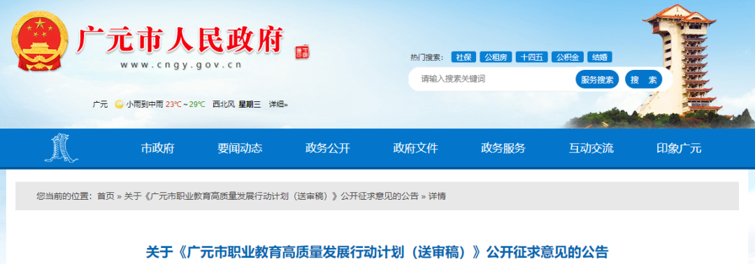 7月13日,广元市人民政府发布了广元市教育局关于《广元市职业教育高质量发展行动计划(送审稿)》公开征求意见的公告。