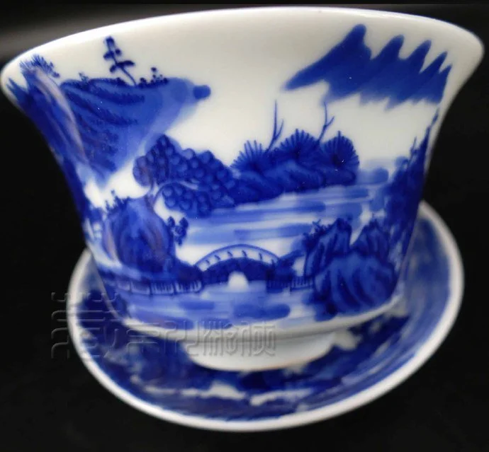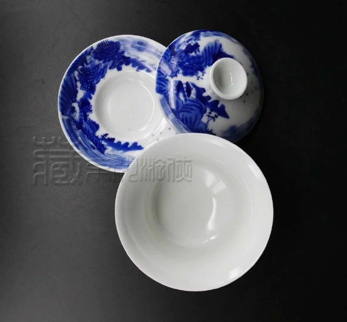 一番鉴赏,无需赘述,此翠毛蓝山水纹盖碗三才杯,诸般特征皆为典型,可谓开门见山,康熙年到代之制器,毋容置疑矣。前述,康熙翠毛蓝瓷器,遗存不丰,属珍贵藏瓷,而完整翠毛蓝盖碗三才杯,亦今为止,则更为罕见难得,具有较高的收藏价值,自是当然矣。