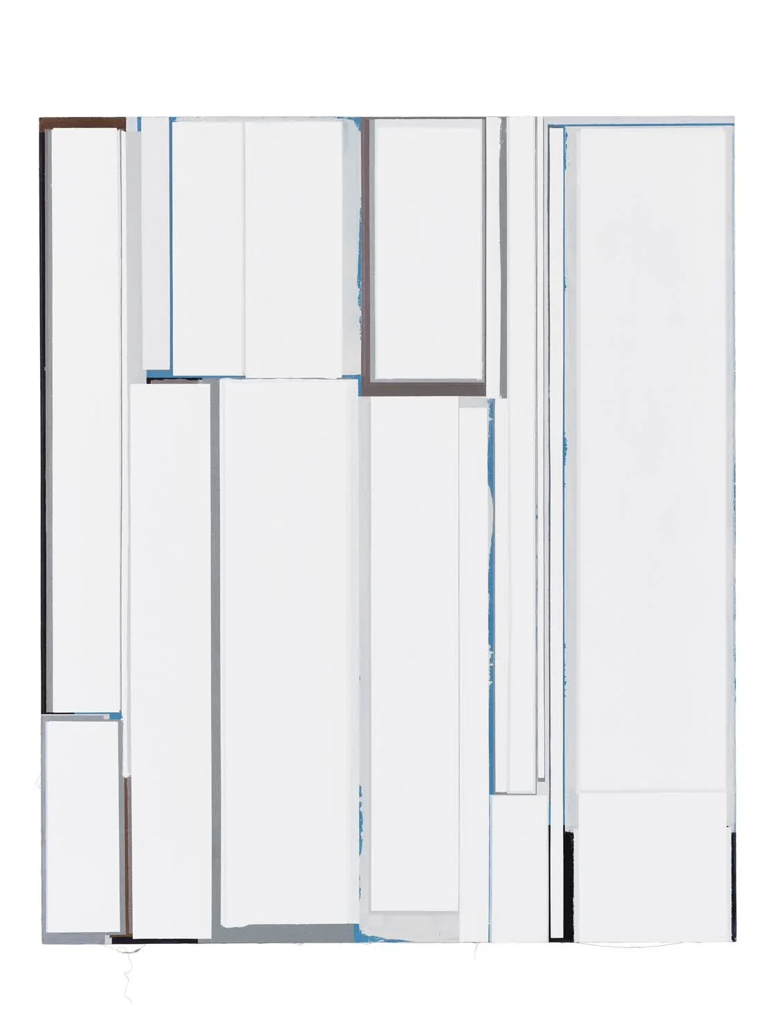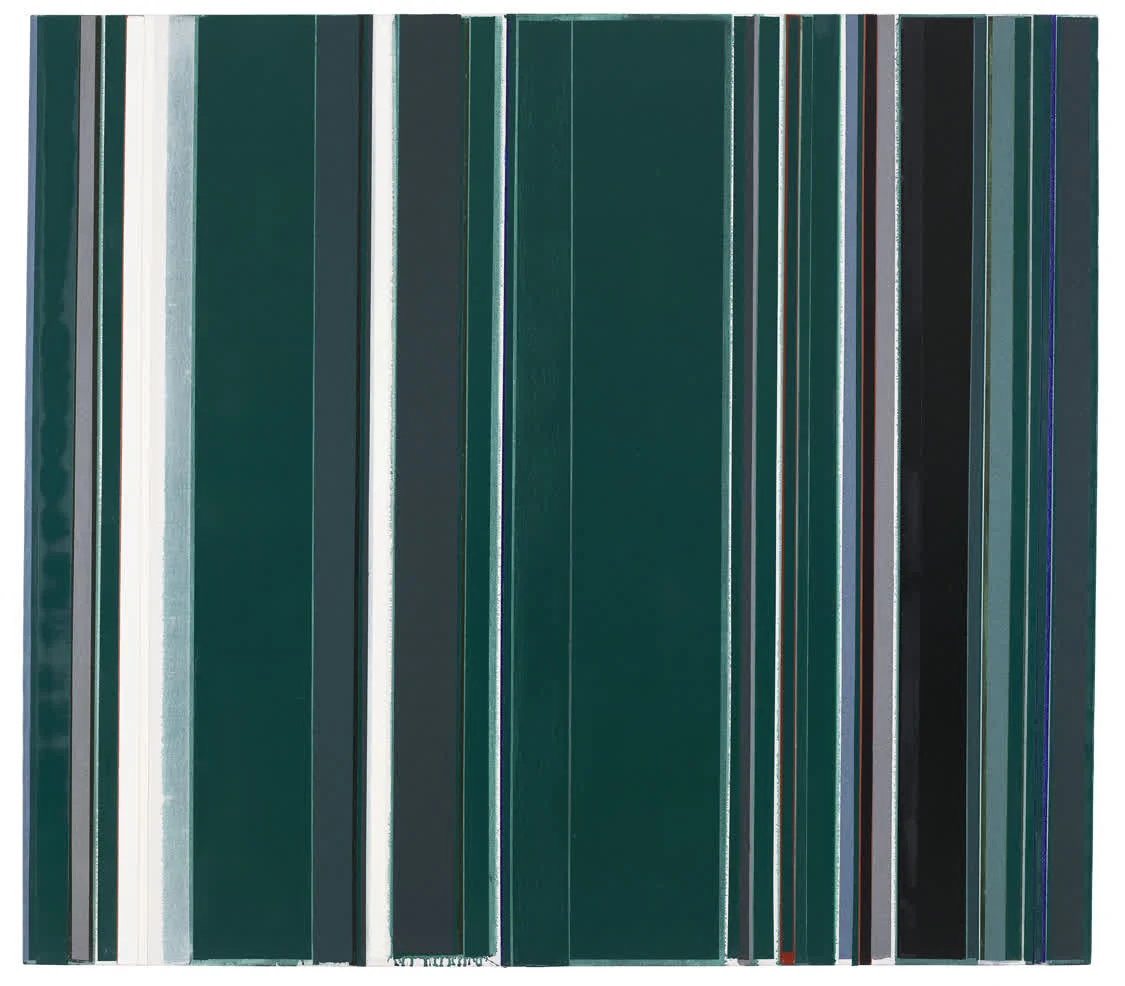 刘可作品的竖线条在画布空间虽然不停地纵伸,但当他体会到了色彩分割主义大师巴特尼.纽曼艺术的分割画面,空间主义大师卢西奥.丰塔纳艺术切割画面的力量,感觉自己离他们那样直接的观念力量还有很大距离。于是他用了逐步分割的办法,画面经密集的纵线分割之后,转向覆盖,缝隙越来越小,缝隙凝聚更集中的力量。
