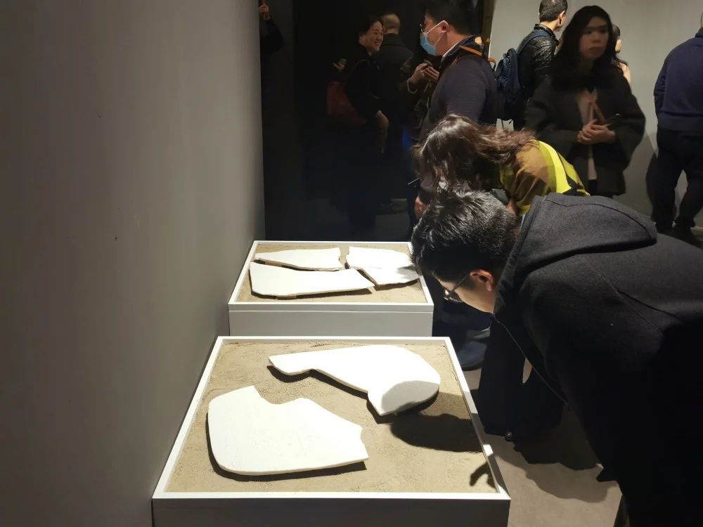 无论是现场重组,还是残损锔合,都具对创作思路和审美品质的准确把握,而对现成实体的拓印与绘制,以其空间转换和凹凸肌理的呈现,以及图形完整与残缺、形象清晰与含混的相互构成关系,都让人眼前一亮,心中一惊,处处都有新鲜之感。