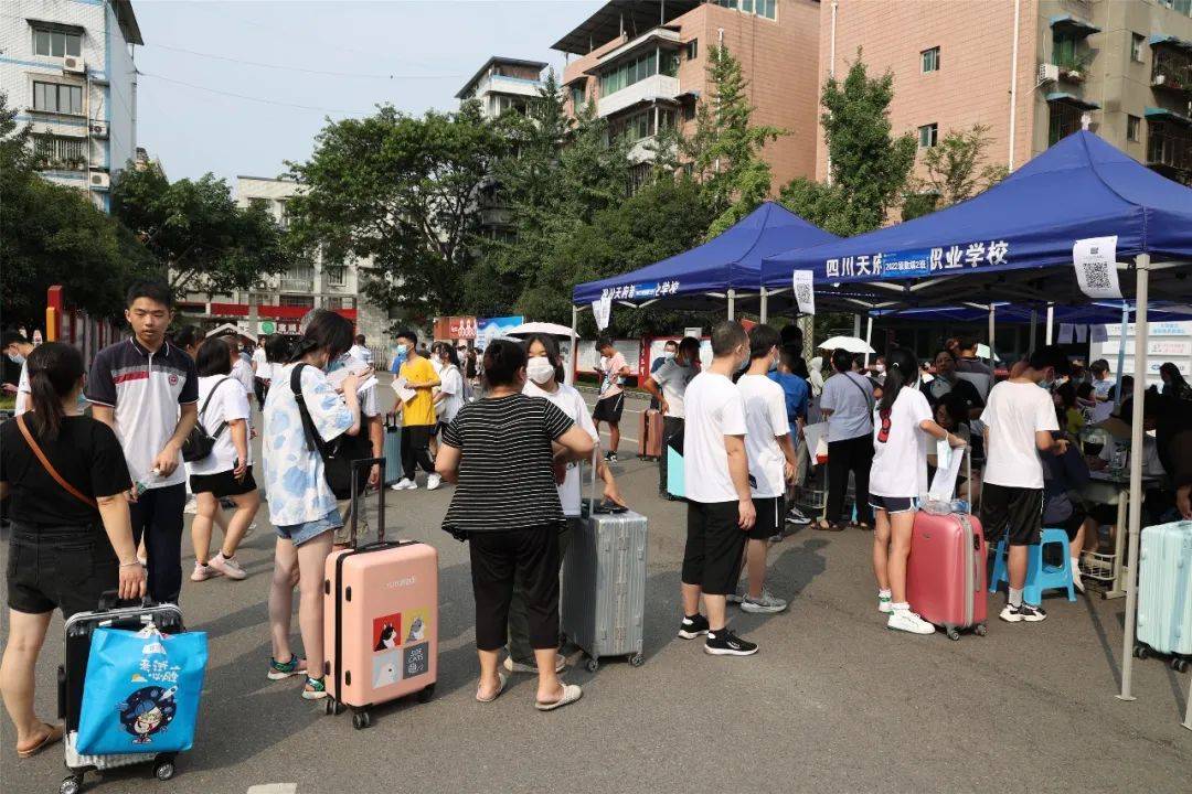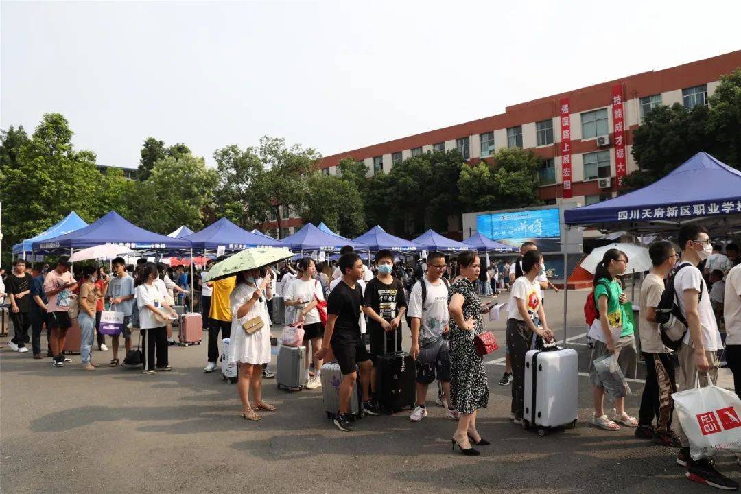 天府职校的迎新现场,正如这盛夏的娇阳,异常火热。