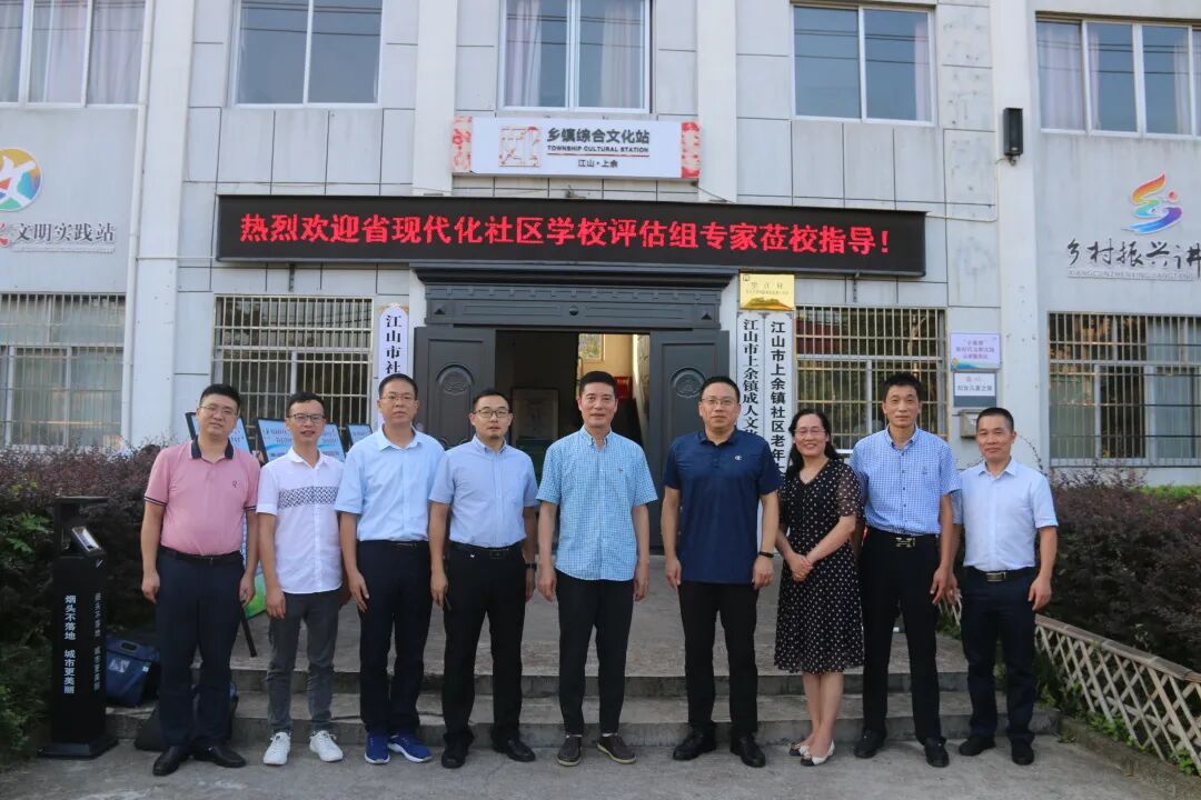 2021年8月30日,浙江省现代化学校创建评估专家组一行来到上余镇成人文化技术学校,对学校的创建工作进行现场考察评估。衢州市教育局党委委员、总督学程卫东,督导处负责人饶碧云,江山市教育局党委委员、副局长王以洪,江山电大党组成员、副校长叶慧庆,上余镇政府、市教育局督导科、幼职成教科、双塔督学中心等相关人员一同前往。