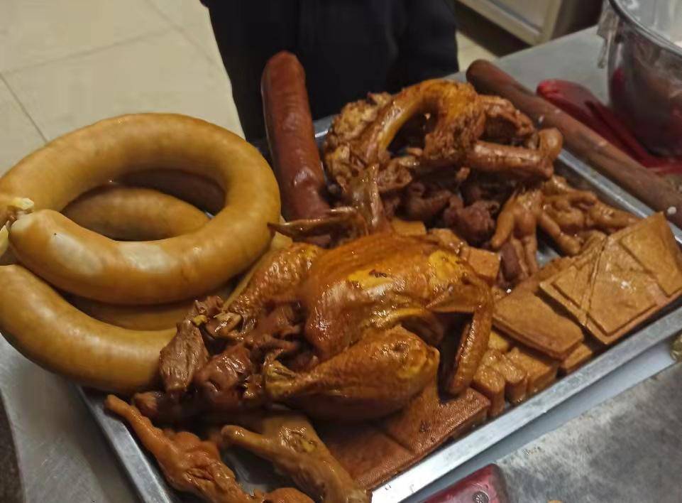 路边道口、美食档口橱窗玻璃里的酱肉熟食色泽酱红,自然鲜亮,看上去就非常有食欲,让人看到就有想买的冲动。酱肉熟食佐餐下酒都是很棒的美味,人们忍不住隔三差五就要消费一次,酱肉熟食店周边的居民都是消费群体。