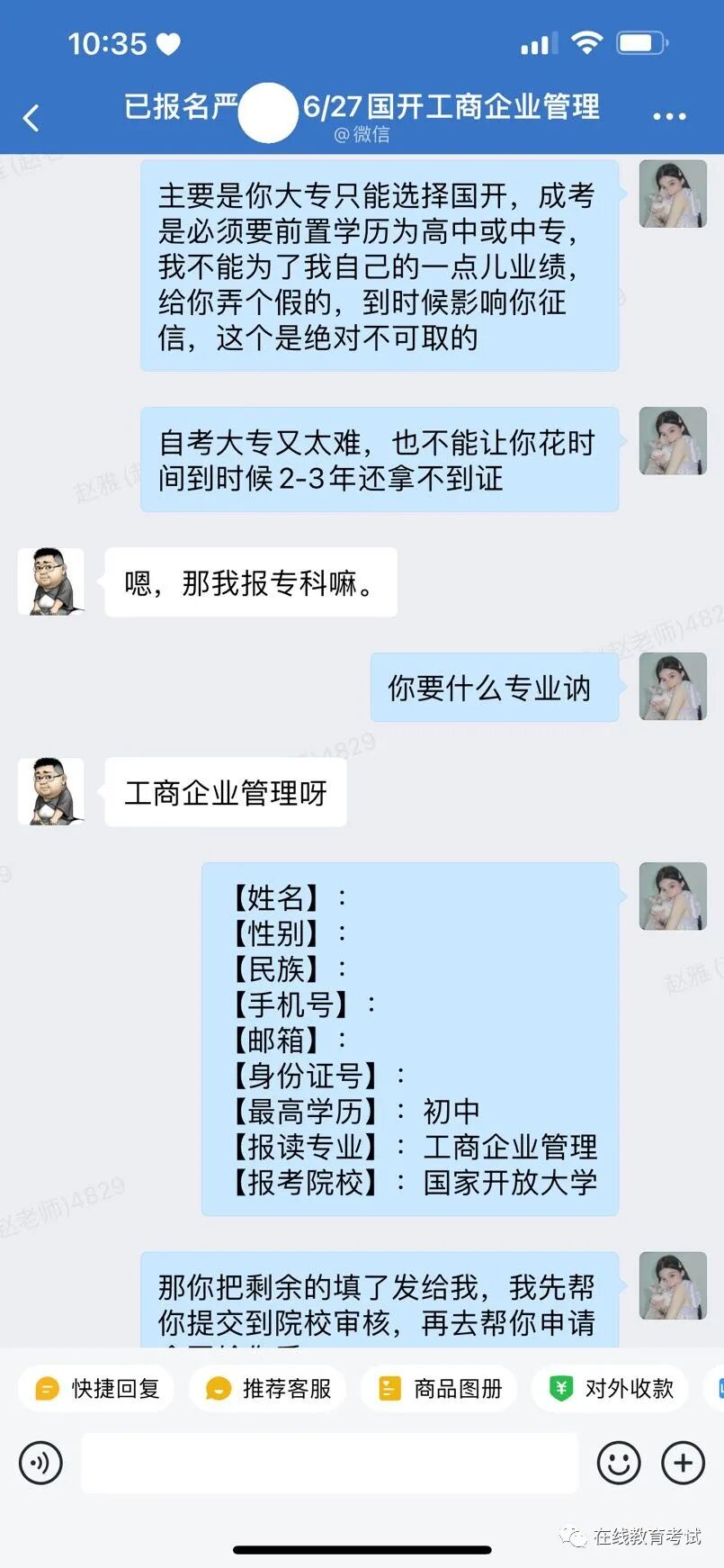而报名广东开放大学是在线配合完成学习,所以不要纠结电大学校是不是在你们当地,也不用担心是不是非要到线下去报名才不会被耽误!严同学在当地报名就是最好的例子。所以你担心的问题,肯定大家都有所担心,但你要知道,专业的人比你了解的情况要多很多,现在又是报名最后阶段了,我们正在对报名学员进行资料补录,想报名的同学扫码添加找我哦!