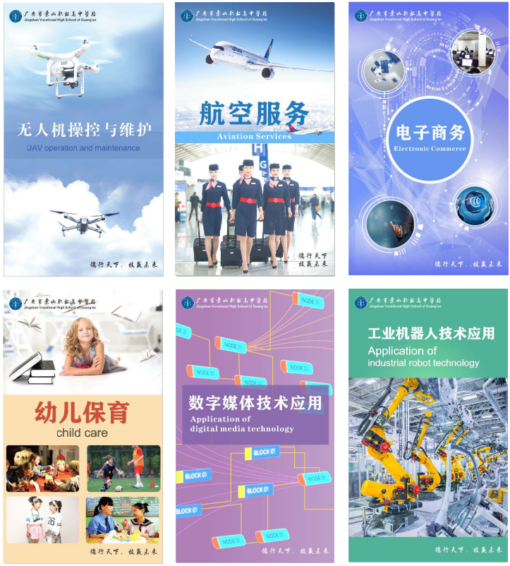 学校开设有航空服务、电子商务、数字媒体技术应用、幼儿保育、无人机操控与维护、工业机器人技术应用等6个专业。通过3年文化课程和专业课程的学习,培养学生的职业素养,提高学生的职业技能,为高等院校输送合格的新生,为经济建设培养合格的技能型人才。