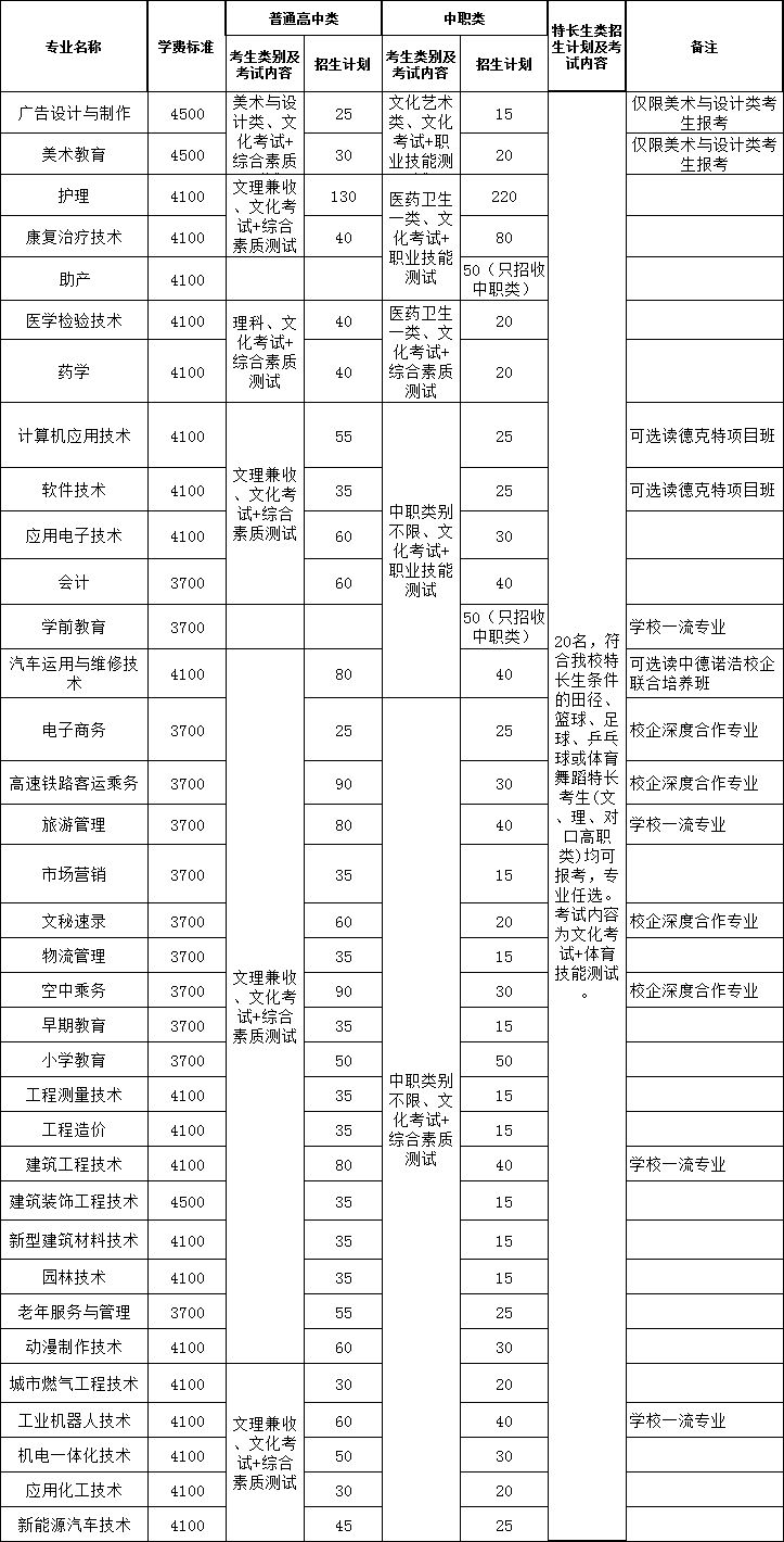注:1、招生专业、招生计划以省教育厅、省教育考试院公布为准。