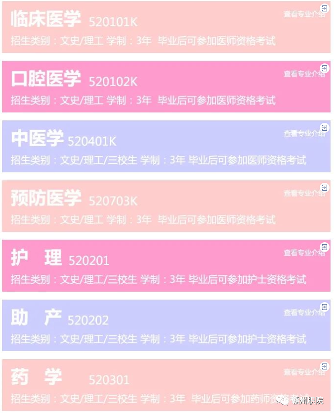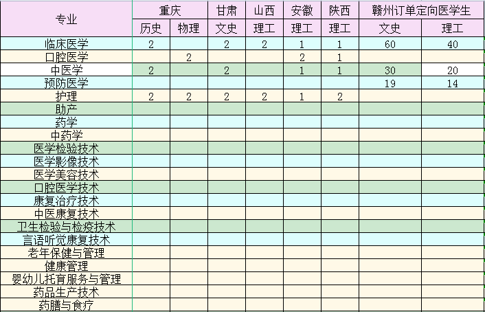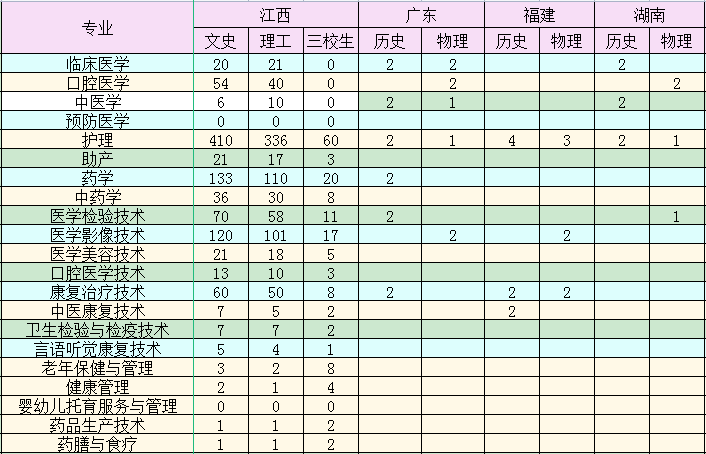 备注:赣州市订单定向医学生限赣州市生源。各省招生代码以各省考试院公布为准,其中广东、福建、湖南、湖北、重庆等新高考改革试点省份考生填报临床医学、口腔医学必须选考化学和生物。