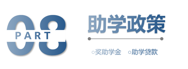 为奖励优秀学生和帮助贫困生顺利完成学业,学校根据国家规定设立了国家奖学金(8000元/人·年)、国家励志奖学金(5000元/人·年)、国家助学金(一档4400元/人·年,二档3300元/人·年,三档2200元/人·年)、优秀学生奖学金、三好学生、优秀学生干部等系列奖励制度,并颁发奖金和荣誉证书,记入学生档案。