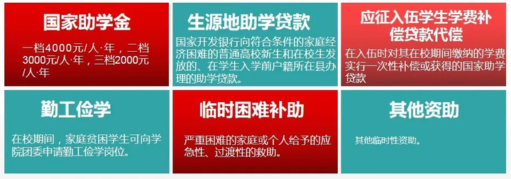同时采取国家助学金、国家生源地助学贷款、勤工俭学、临时困难补助、学费减免、应征入伍学费补偿代偿及学费资助等多项帮困助学措施。